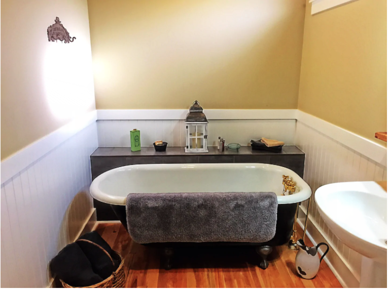 While it isn’t located in Calgary, the Bunkhouse offers visitors a place to stay in the heart of the prairies in Mossleigh, Alberta. The Bunkhouse is newly renovated and features a living area, bedroom, fireplace, en-suite bathroom with a claw-foot tub, and even… horseback riding tours!!!! The owners of the property live in the main house, but the ranch and firepit, as well as parts of the main house, are open to the guests. In the Bunkhouse, there is a TV with a DVD player (no service-connected), heating, and essentials. Guests are welcome to come into the house to use the wifi and to enjoy a continental breakfast supplied by the owners! While it isn’t in Calgary, 92% of reviewers have given it a 5-star rating for the location. Plus, it’s only a 20-minute drive to the city!